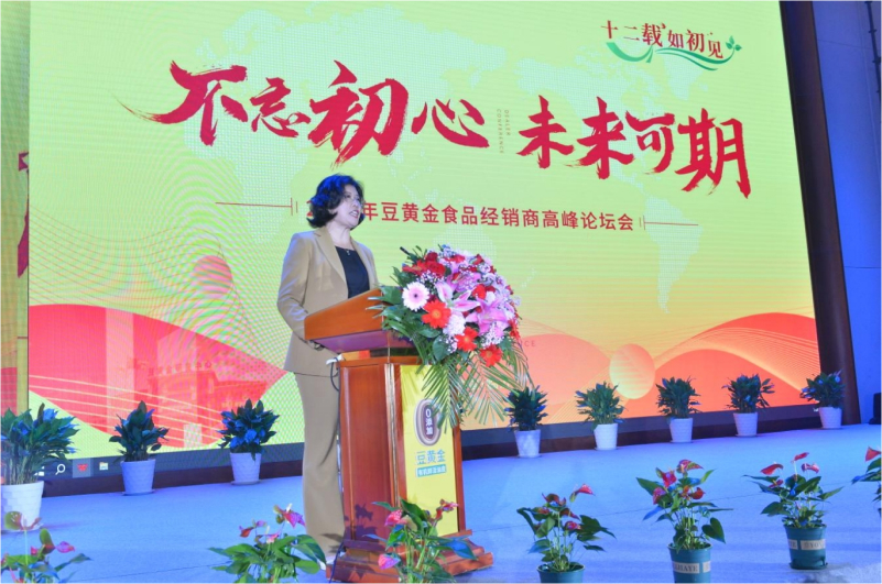 會議伊始,董事長康德云女士圍繞《筑基強根·拓局謀遠》展開主題演講,她在會上堅定表示,豆黃金的“本”是質量,0添加天然綠色的食品。豆黃金目標清晰,就是利用好“0添加鮮腐竹”這一塊金字招牌,把品牌做大做強。疫情過后,國門一開,萬邦來商。消費信心在回升,中國經濟將全面復蘇,養生、綠色餐飲的前景廣闊。過去的一年,我們實施了人才戰略體系,廣納人才,煥新團隊,為提振市場信心、擴大品牌影響力、拓展營銷思路等戰略方針,同時,感恩這么十二載全國各地經銷商家人們的支持,對大家的到來由衷的表示感謝,實現“不忘初心”與“未來可期”的結合,更好地“面向未來”。